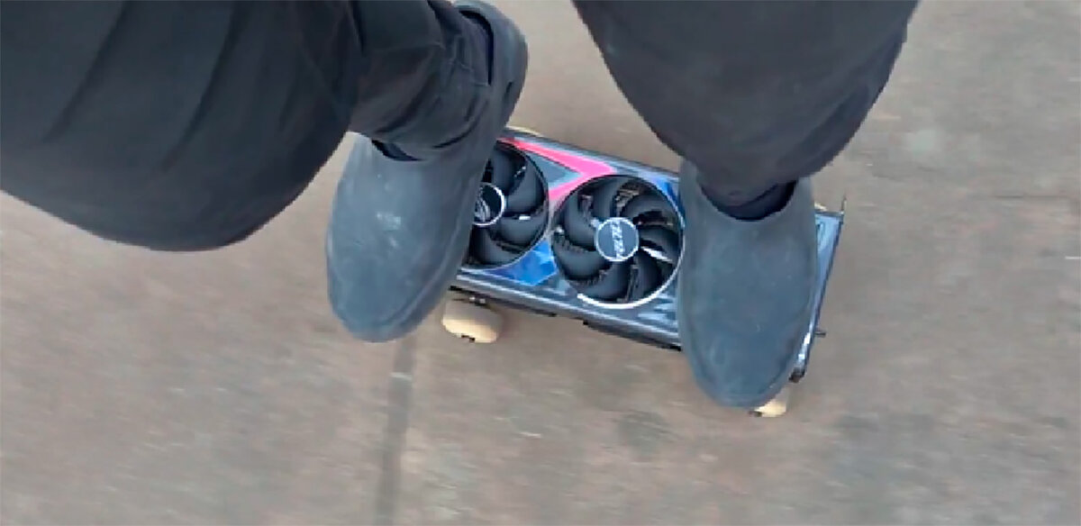 На платформе Reddit пользователь под ником ashleysaidwhat продемонстрировал оригинальный проект — скейтборд, собранный на базе системы охлаждения видеокарты GeForce RTX 5080 от Asus Astral. В данной конструкции использовался не сам графический процессор, а его большой охладитель, оснащенный тремя вентиляторами. В видео, опубликованном автором, этот скейтборд показан в действии.