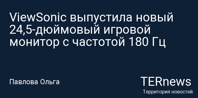 ViewSonic выпустила новый 24,5-дюймовый игровой монитор с частотой 180 Гц