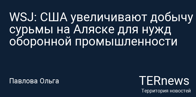 WSJ: США увеличивают добычу сурьмы на Аляске для нужд оборонной промышленности