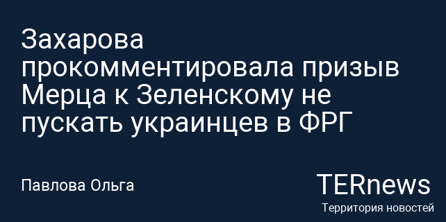 Представитель Министерства иностранных дел России Мария Захарова прокомментировала недавнее заявление канцлера Германии Фридриха Мерца, который призвал президента Украины Владимира Зеленского не допускать выезд украинцев в Германию.