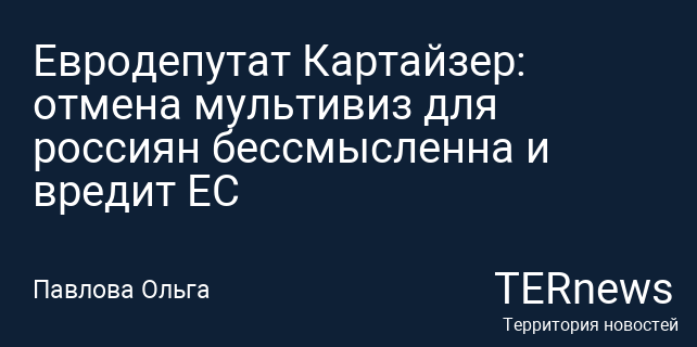 Евродепутат Картайзер: отмена мультивиз для россиян бессмысленна и вредит ЕС