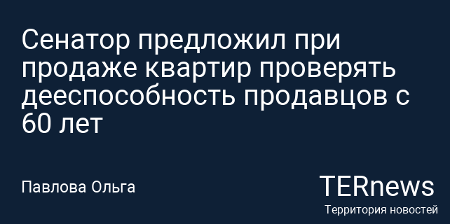 Сенатор предложил при продаже квартир проверять дееспособность продавцов с 60 лет