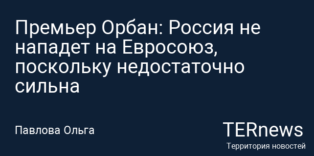 Премьер Орбан: Россия не нападет на Евросоюз, поскольку недостаточно сильна