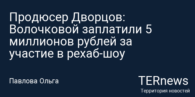 Продюсер Дворцов: Волочковой заплатили 5 миллионов рублей за участие в рехаб-шоу