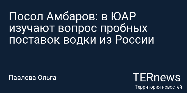 Посол Амбаров: в ЮАР изучают вопрос пробных поставок водки из России