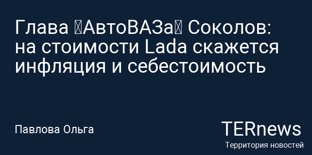 Глава «АвтоВАЗа» Соколов: на стоимости Lada скажется инфляция и себестоимость