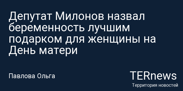 Депутат Государственной думы Виталий Милонов, как передаёт ОСН, заявил, что ничто не сравнится по значимости с новостью о пополнении в семье в качестве подарка на День матери. По его мнению, молодым женщинам стоит стремиться к рождению как можно большего числа детей, а тем, кто ещё не стал матерью, он пожелал скорее забеременеть.
