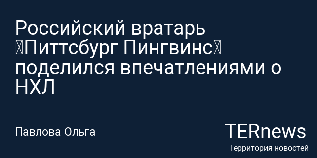 Российский вратарь «Питтсбург Пингвинс» поделился впечатлениями о НХЛ