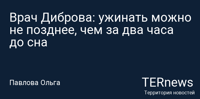 Врач Диброва: ужинать можно не позднее, чем за два часа до сна
