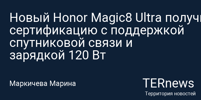 Новый Honor Magic8 Ultra получил сертификацию с поддержкой спутниковой связи и зарядкой 120 Вт