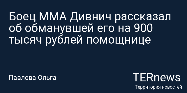 Боец ММА Дивнич рассказал об обманувшей его на 900 тысяч рублей помощнице