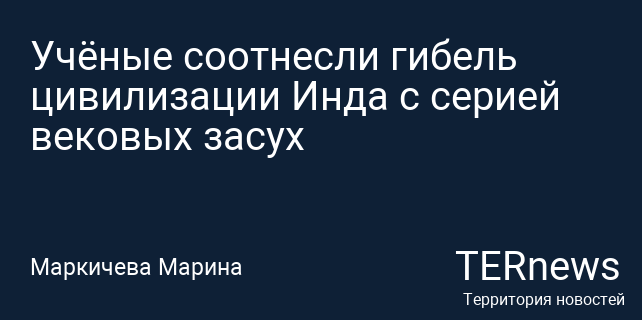 Учёные из Индии и США представили результаты исследования, проливающего свет на причины гибели древней индской цивилизации, которая существовала на территории современных Индии и Пакистана около пяти тысяч лет назад. Работа опубликована в научном журнале Communications Earth Environment.