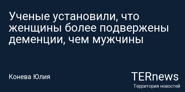 Ученые установили, что женщины более подвержены деменции, чем мужчины