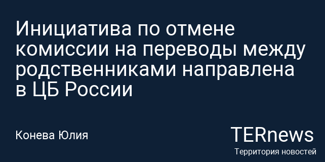 Инициатива по отмене комиссии на переводы между родственниками направлена в ЦБ России