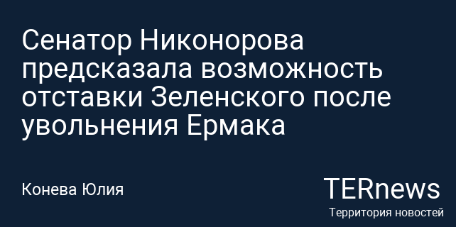 Наталья Никонорова, замглавы комитета Совета Федерации по международным делам, высказала мнение о том, что украинскому президенту Владимиру Зеленскому может грозить отставка, аналогичная увольнению его бывшего помощника Андрея Ермака.