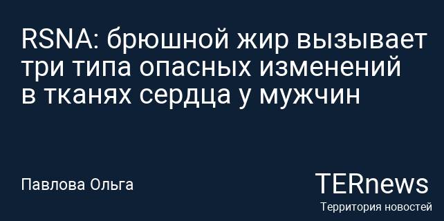 RSNA: брюшной жир вызывает три типа опасных изменений в тканях сердца у мужчин
