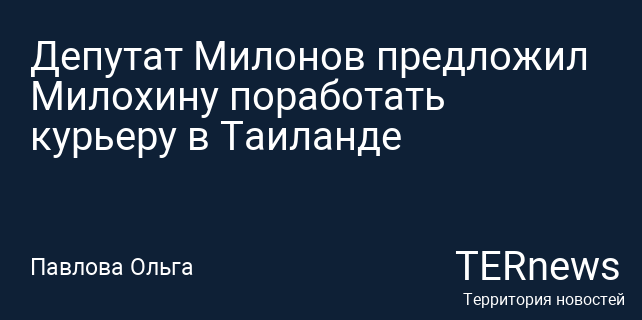 Депутат Милонов предложил Милохину поработать курьеру в Таиланде