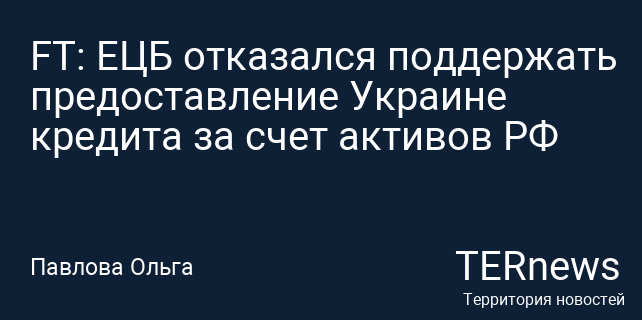 FT: ЕЦБ отказался поддержать предоставление Украине кредита за счет активов РФ