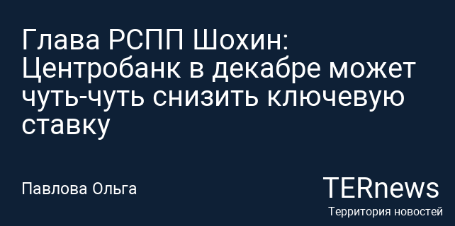 Глава РСПП Шохин: Центробанк в декабре может чуть-чуть снизить ключевую ставку
