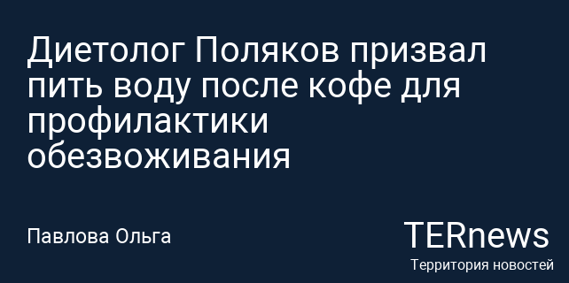 Диетолог Поляков призвал пить воду после кофе для профилактики обезвоживания