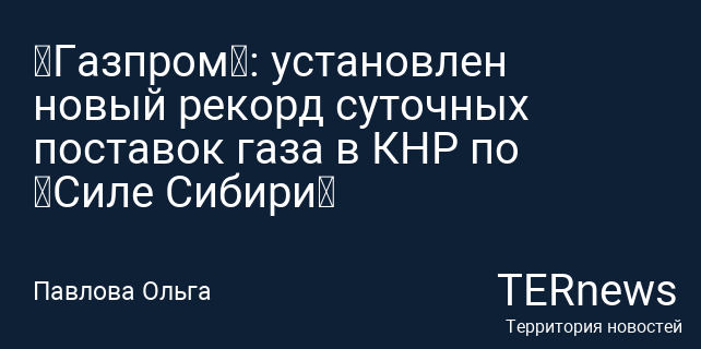 Пресс-служба компании в своём Telegram‑канале сообщила, что 2 декабря «Газпром» достиг нового исторического суточного объёма поставок в Китай через газопровод «Сила Сибири». При этом предыдущий рекорд был отмечен 1 декабря.