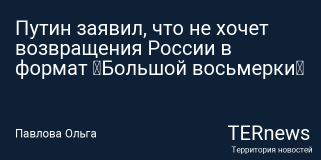 Путин заявил, что не хочет возвращения России в формат «Большой восьмерки»