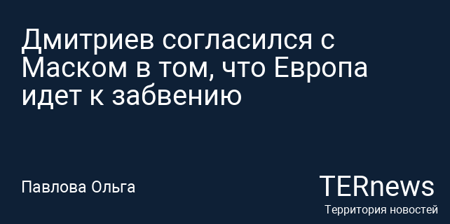 Дмитриев согласился с Маском в том, что Европа идет к забвению