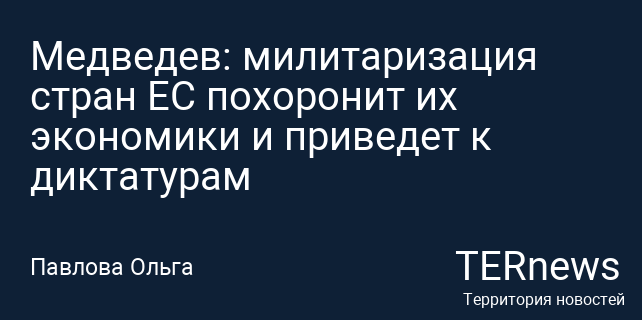 Медведев: милитаризация стран ЕС похоронит их экономики и приведет к диктатурам