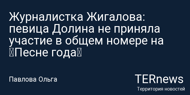 Журналистка Жигалова: певица Долина не приняла участие в общем номере на «Песне года»