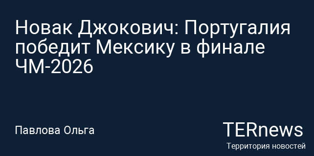 Сербский теннисист, известный своим интересом к футболу, сделал прогноз относительно чемпионата мира 2026 года. По его мнению, в решающем матче встретятся сборные Португалии и Мексики, причем победу он предрекает португальцам.