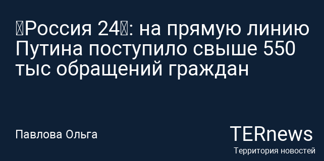 Более полумиллиона обращений поступили на прямую линию, организованную президентом России Владимиром Путиным. В эфире телеканала «Россия 24» ведущий сообщил, что по данным колл-центра количество вопросов уже составляет 552 тысячи.