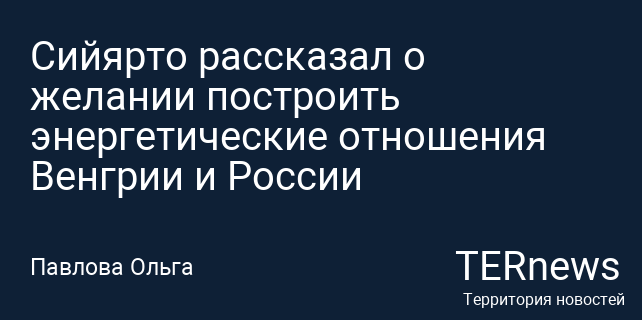 Сийярто рассказал о желании построить энергетические отношения Венгрии и России