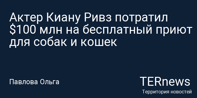 Актер Киану Ривз потратил $100 млн на бесплатный приют для собак и кошек