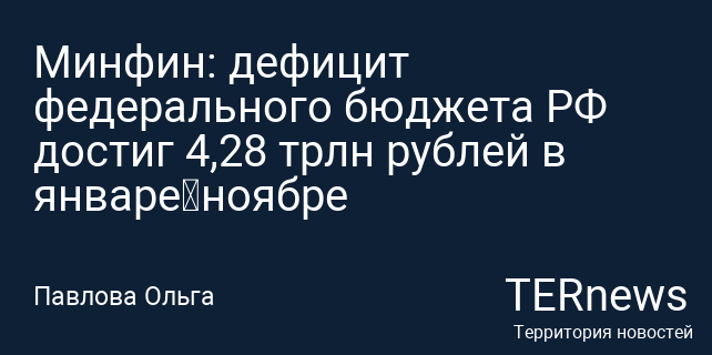 Минфин: дефицит федерального бюджета РФ достиг 4,28 трлн рублей в январе–ноябре