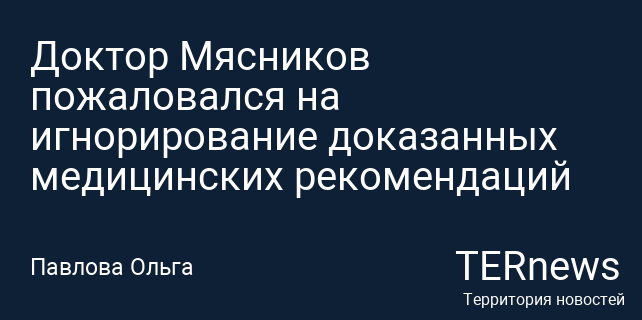 Доктор Мясников пожаловался на игнорирование доказанных медицинских рекомендаций