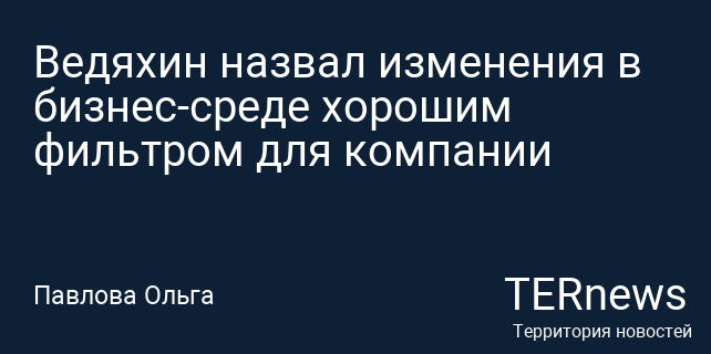 Ведяхин назвал изменения в бизнес-среде хорошим фильтром для компании