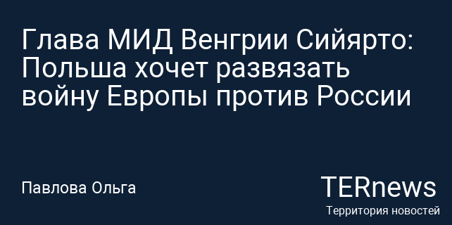 Глава МИД Венгрии Сийярто: Польша хочет развязать войну Европы против России