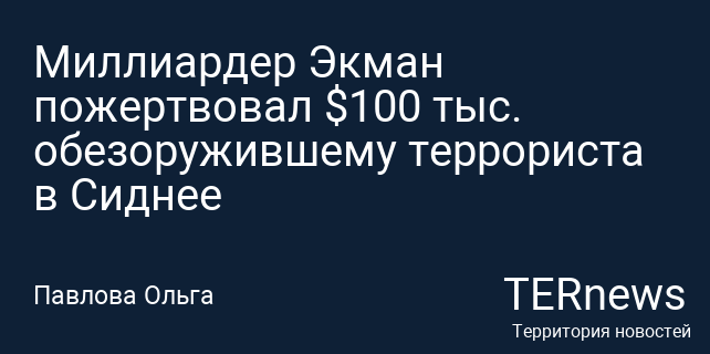 Миллиардер Экман пожертвовал $100 тыс. обезоружившему террориста в Сиднее