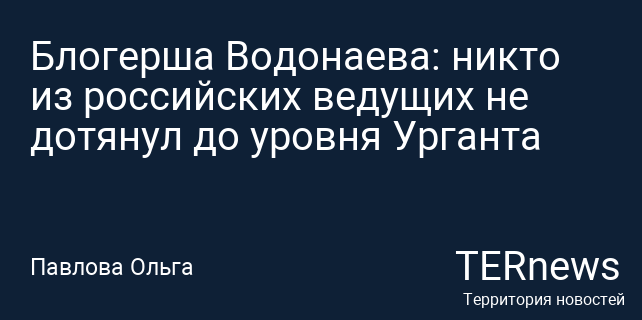 Блогерша Водонаева: никто из российских ведущих не дотянул до уровня Урганта
