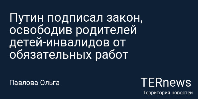 Путин подписал закон, освободив родителей детей-инвалидов от обязательных работ