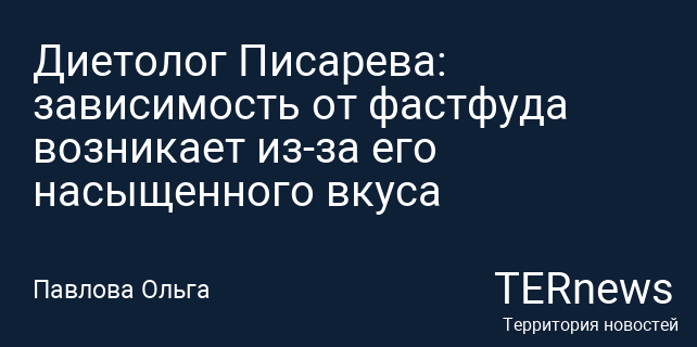 Диетолог Писарева: зависимость от фастфуда возникает из-за его насыщенного вкуса
