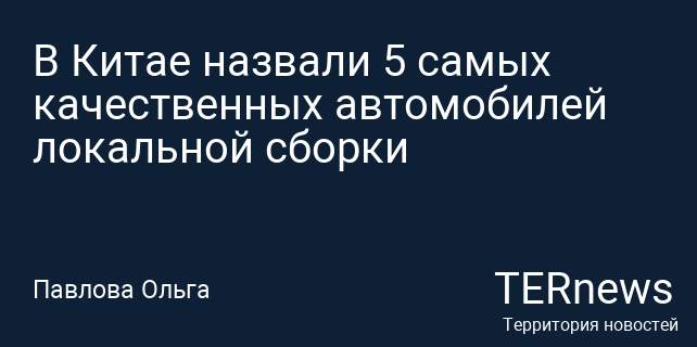 В Китае назвали 5 самых качественных автомобилей локальной сборки