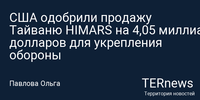 Государственный департамент Соединенных Штатов дал зеленый свет на продажу Тайваню реактивных систем залпового огня HIMARS на сумму 4,05 миллиарда долларов.