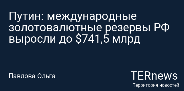 Путин: международные золотовалютные резервы РФ выросли до $741,5 млрд
