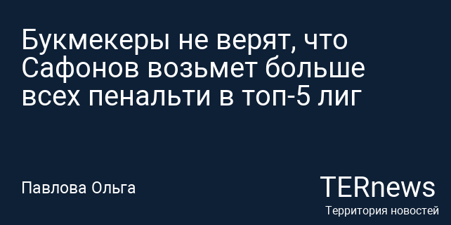 По данным Sports.ru, букмекерские компании оценивают вероятность того, что вратарь парижского ПСЖ и сборной России Матвей Сафонов займет первое место по количеству отраженных пенальти в пяти ведущих европейских лигах в сезоне-2025/2026, как крайне низкую. На такой исход можно сделать ставку с коэффициентом 25,00. Лидерами среди претендентов являются семь вратарей, которые уже успели отразить по два пенальти в этом сезоне, на которых ставки принимаются с коэффициентом 8,00. В числе фаворитов находятся голкипер «Торино» Ваня Милинкович-Савич и вратарь «Милана» Майк Меньян.