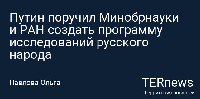 Путин поручил Минобрнауки и РАН создать программу исследований русского народа