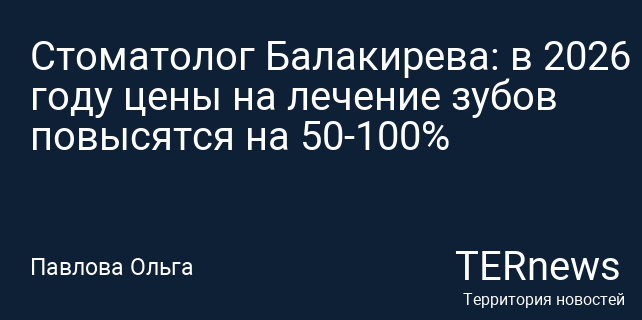 По информации врача-стоматолога Марии Балакиевой, в 2026 году цены на услуги стоматологов могут вырасти на 50-100%. Основные факторы, влияющие на это повышение, включают удорожание импортных материалов, рост затрат на аренду и коммунальные услуги, а также увеличение логистических расходов и налог на добавленную стоимость до 22%.