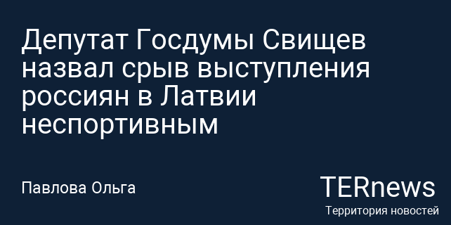 Депутат Госдумы Свищев назвал срыв выступления россиян в Латвии неспортивным
