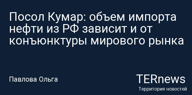 Посол Кумар: объем импорта нефти из РФ зависит и от конъюнктуры мирового рынка