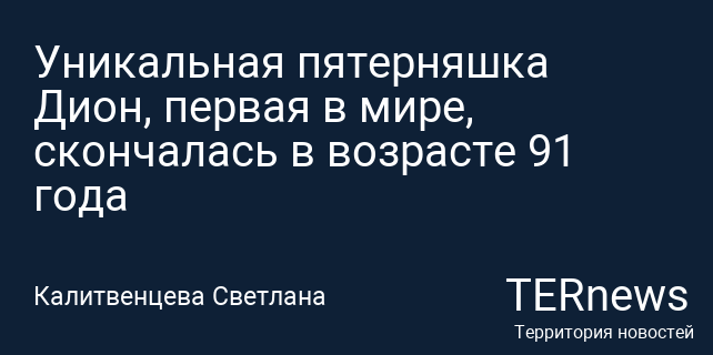 Уникальная пятерняшка Дион, первая в мире, скончалась в возрасте 91 года